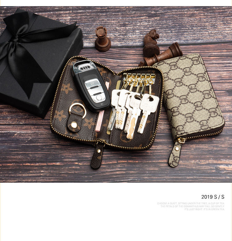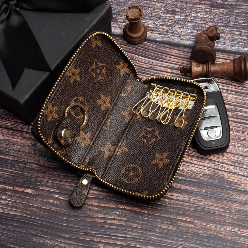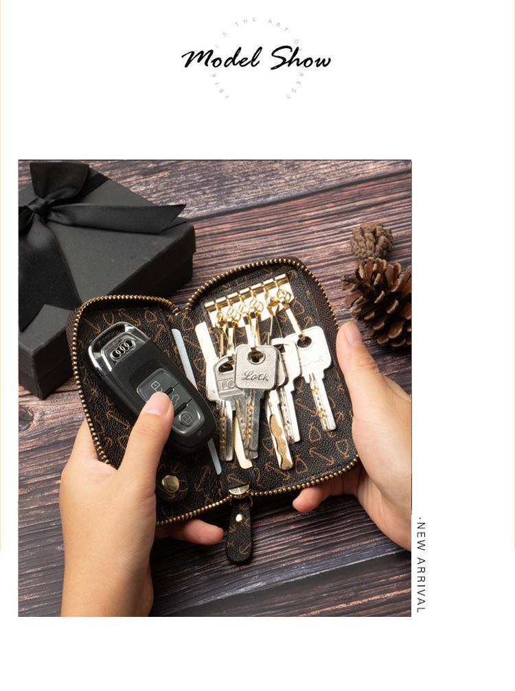 キーホルダー キーケース キーリング 小銭 札入れ付き レザー 革 メンズ キーホルダー 6連 三つ折 カードキーケース 大容量 海外通販 送料無料[#008]